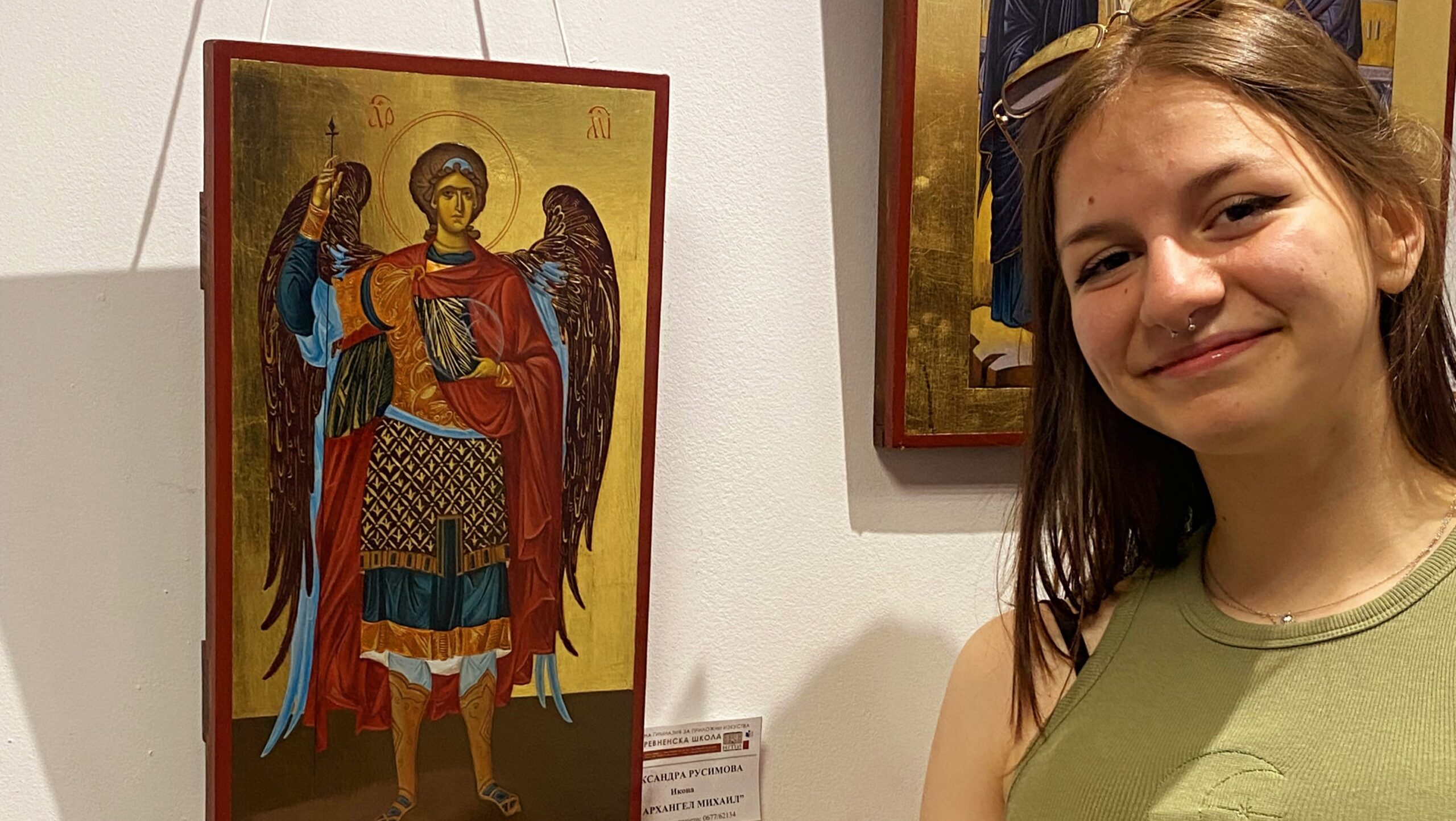 От 361 творби на различни младежи, Александра бе отличена с първо място в Тревненската школа и трето място в цяла България с иконата на Архангел Михаилс 24 каратово златно покритие. Въпреки краткият краен срок, дъщерята на Яна Средкова се е справила повече от перфектно.