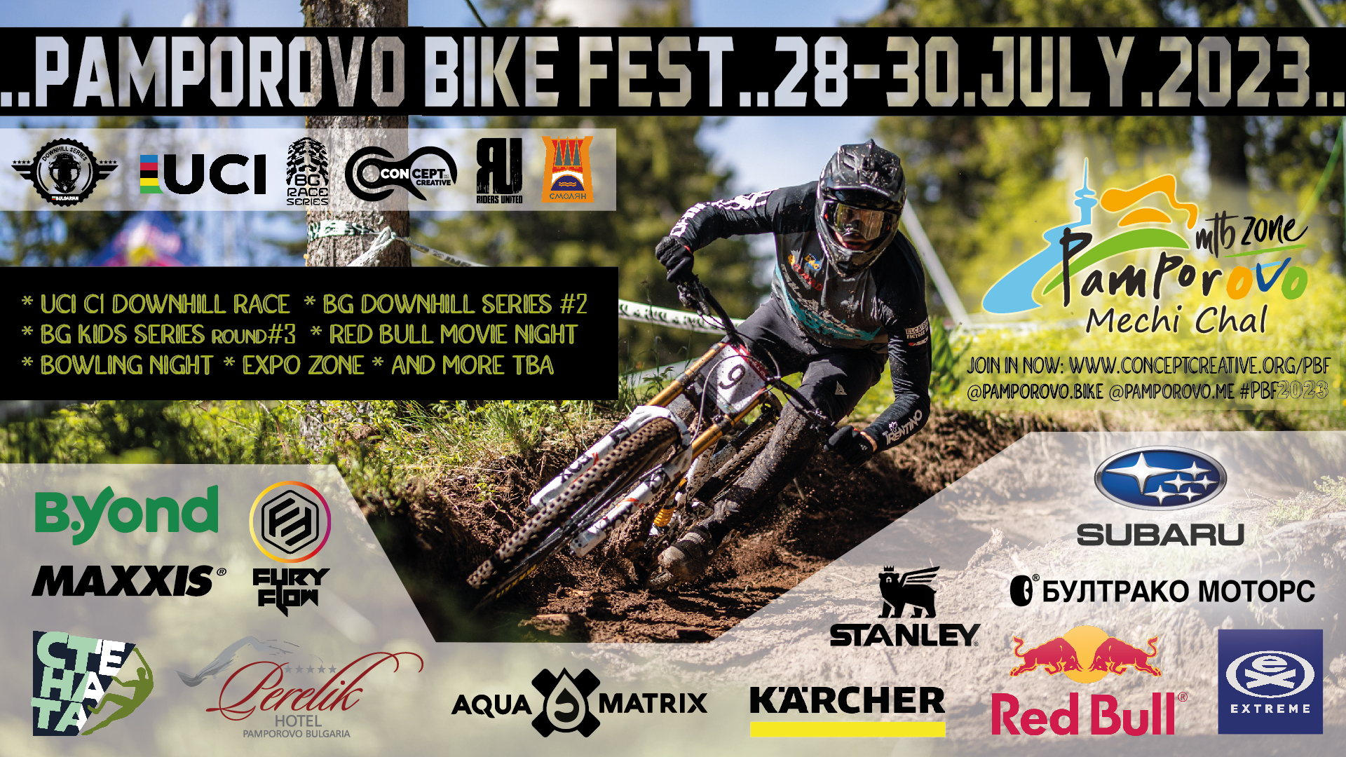 От 28-и до 30-и юли, родопския ни курорт ще бъде домакин на най-голямото “байк” събитие в страната за годината – Пампорово Байк Фест 2023. По традиция и тази година, част от програмата на събитието са голямо международно състезание по спускане включено в календара на Международния Колоездачен Съюз, носещо точки за световната ранглиста, кръг от Българските даунхил серии и кръг от детския шампионат.