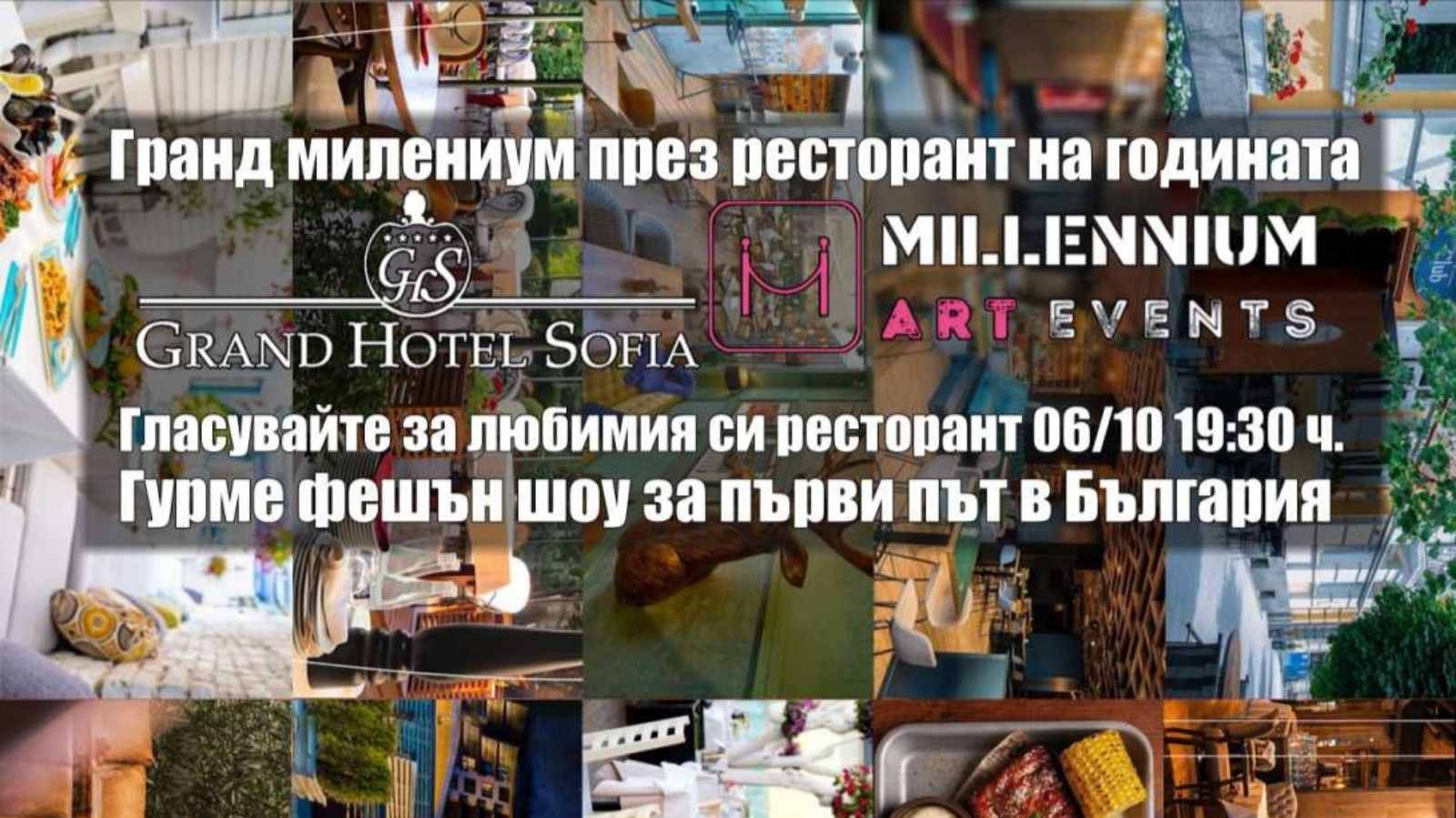 В началото на месец октомври, „Гранд Хотел София“ ще стане домакин на събитието Гранд Милемиум Приз „Ресторант на годината“. Датата е 06 октомври, а нячалото на събитието ще бъде в 19:30 часа.