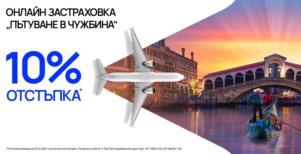 С настъпването на по-активния сезон за пътуване покрай пролетните празници и ученическата ваканция, Vivacom предлага 10% отстъпка за застраховка „Пътуване в чужбина“ до 30 април 2026 г. Всеки, който планира почивка или кратко пътуване извън страната, може да се възползва от предложението и да осигури повече спокойствие за себе си и най-близките.