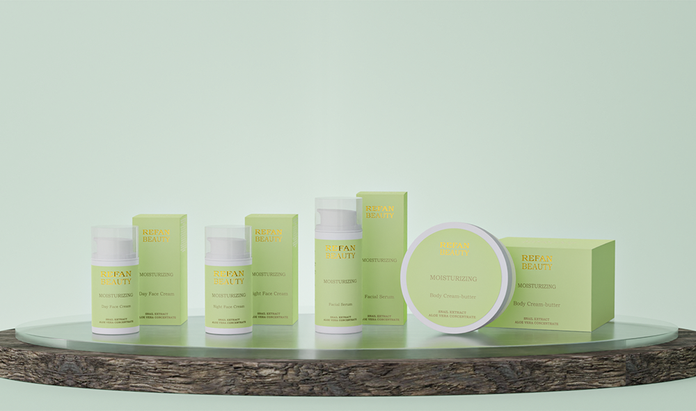Едни от най-често използваните в козметиката екстракти: от охлюви и алое вера, са комбинирани в серията MOISTURIZING SNAIL EXTRACT AND ALOE VERA GEL CONCENTRATE на фирма REFAN. Серията включва: дневен крем, нощен крем, серум за лице и бутер крем за тяло. Използваме високоефективна активна съставка: гел-концентрат от алое вера, която се отглежда в Мексико и е с гарантирано качество. Съдържа над 300 незаменими за кожата вещества, от които захари, витамини, микроелементи и аминокиселини. Гел-концентратът от алое вера е със силно регенериращо, хидратиращо и протвовъзпалително действие. Широко се използва в козметичните продукти, благодарение на изключително положителното му действие върху кожата. Свойствата му са документирани от над 5000 години и се прилагат в китайската, индийската и египетската култура. Алоето е присъствало като една от любимите билки в разкрасяващите ритуали на египетските царици. Другата активна съставка в серията е стандартизиран екстракт от охлюви с гарантиран френски произход, който стимулира клетъчните функции, подпомага регенерирането на кожата и забавя процесите на стареене. Активира дермата, благодарение на съдържащите се в него ценни компоненти – алантоин, колаген, еластин, гликолова киселина и хиалуронова киселина.