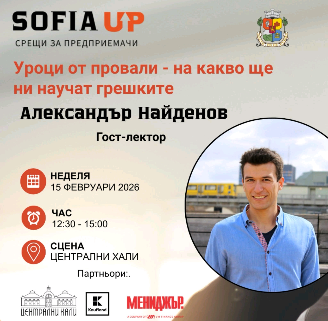 Следващото събитие от поредицата SOFIA UP ще се проведе на 15 февруари от 13:00 часа, Сцена Централни хали, ет. -1 и ще бъде на тема: “Уроци от провали – на какво ще ни научат грешките”