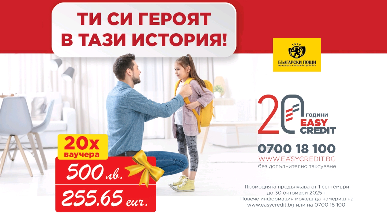„Изи Кредит“ раздава 20 ваучера по 500 лв. до 30 октомври